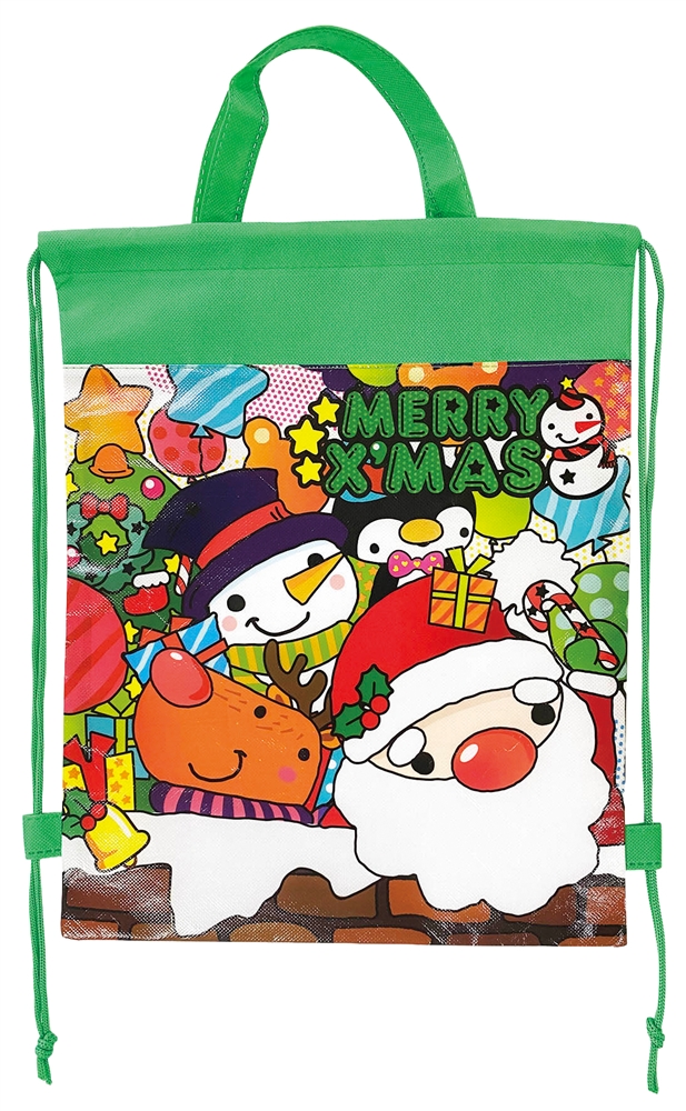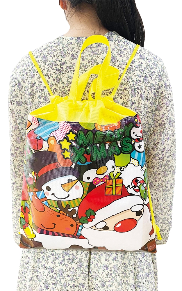 リュックタイプの巾着バッグ。持ち手付きなので手持ちバッグとしても使えます。
