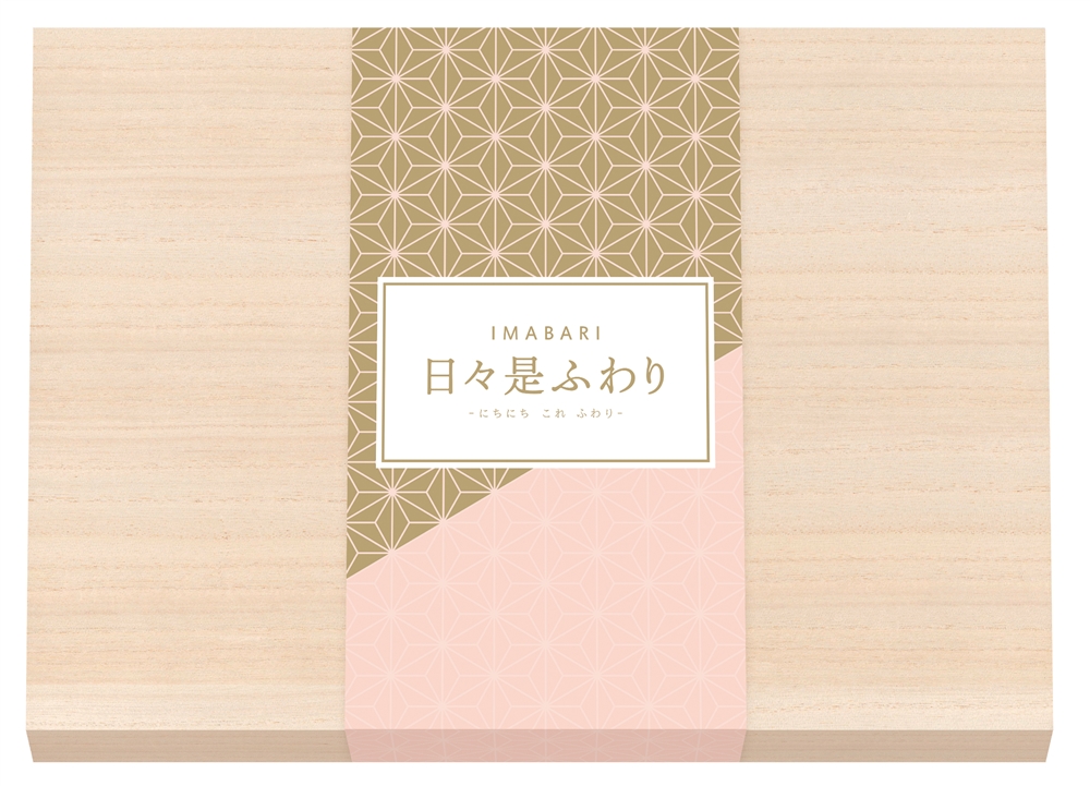 淡くやさしいピンクとアイボリーの「紅白」を思わせる色彩で織り上げたパイルのやさしい肌触りをふわりと感じる今治タオル。繊細な模様にあしらったのは縁起のいい「麻の葉模様」。麻はすくすくとまっすぐに伸びることから成長を願う柄とされ、古くから愛され続けています。木箱入りの上品な佇まいで「感謝」を込めた大切な贈りものとして最適です。