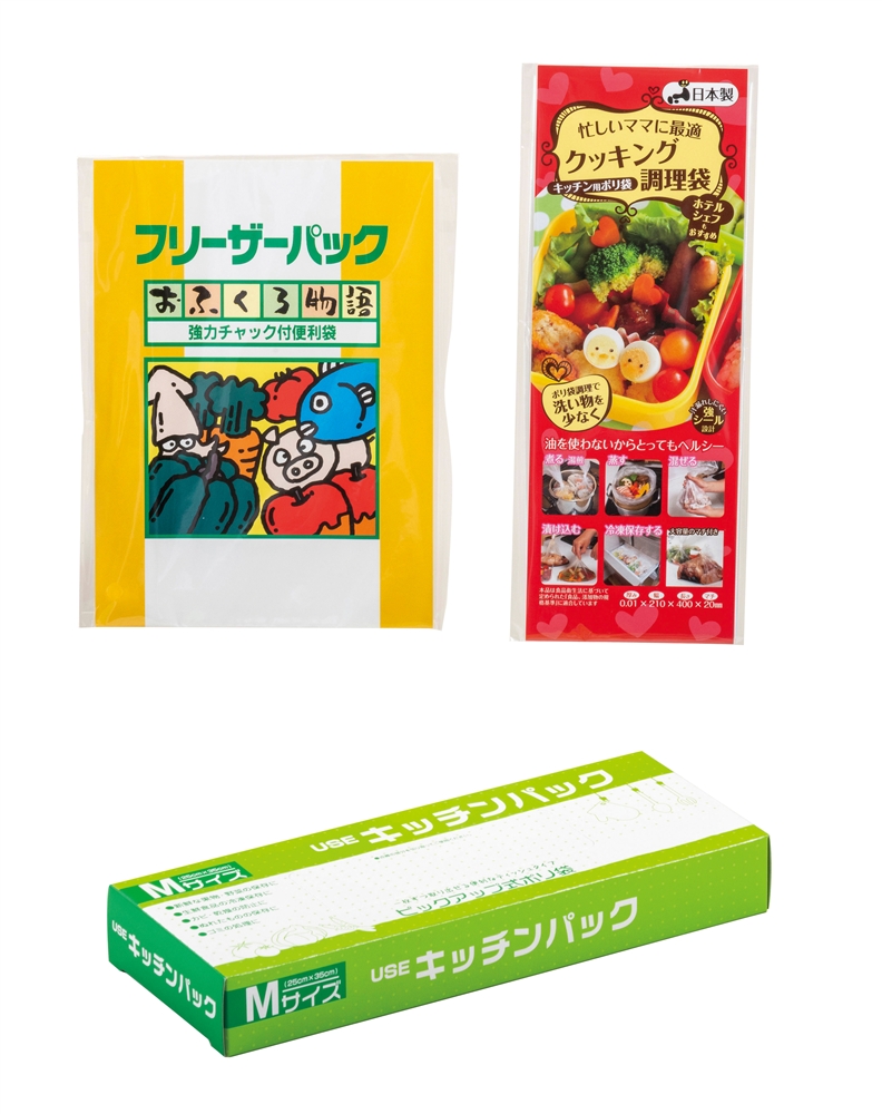 備考 | <セット内容> ●USEキッチンパック10枚BOX×1 ●クッキング調理袋2枚×1 ●フリーザーパック1枚×1 |