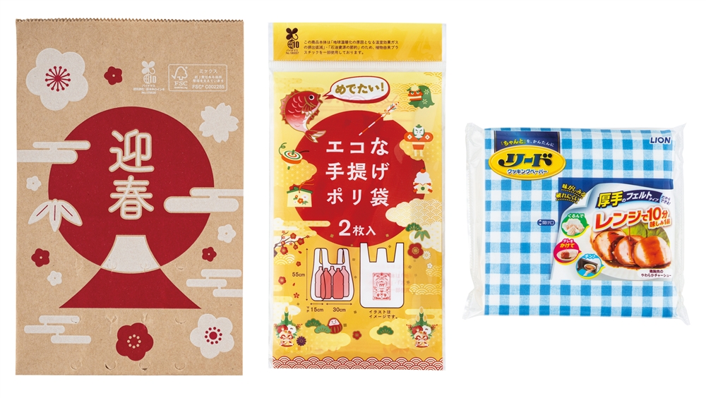 備考 | <セット内容> ・P&G除菌ジョイコンパクト170ml(さわやか微香)×1 ・ライオンCHARMYMagica220ml(除菌+)×1 ・ライオンリード冷凍も冷蔵も新鮮保存バッグS3枚×1 ・ネットスポンジ×1 ・めでたいエコな手提げポリ袋2枚入×1 ・迎春柄紙製水切り袋1枚×1 ・ライオンリードクッキングペーパー小4枚×1 ※ネットスポンジは4色不均等アソートになります。 |