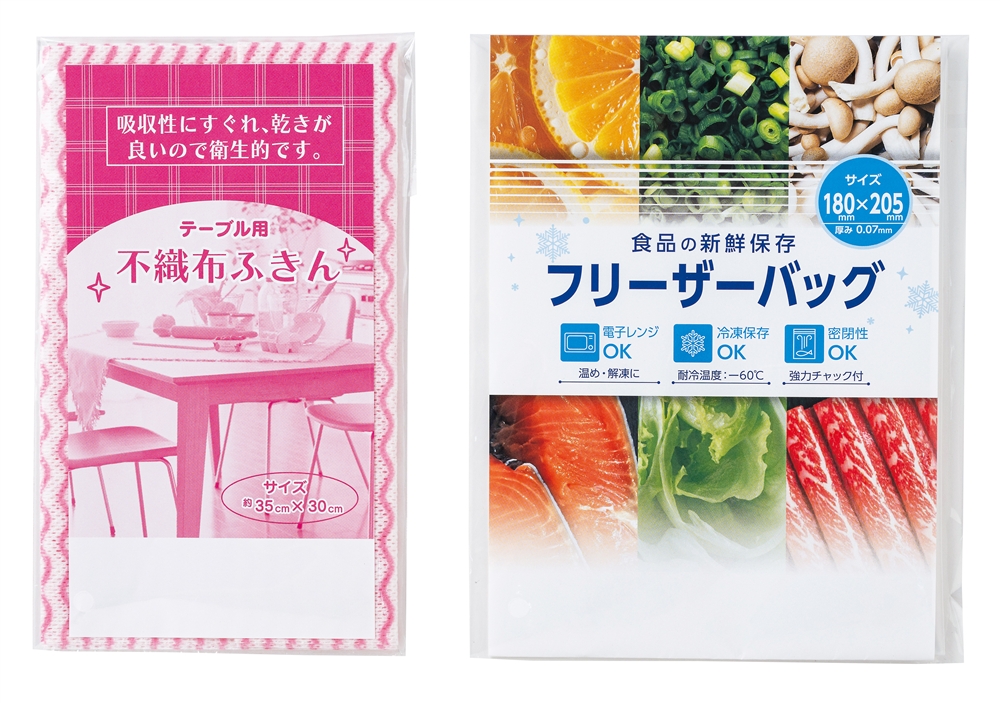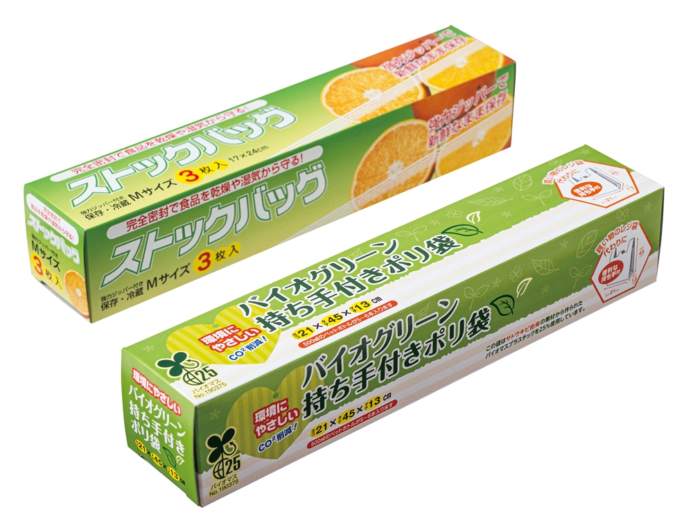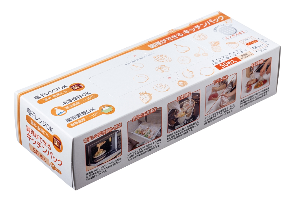 備考 | <セット内容> ●調理ができるキッチンパックM50枚×1 ●バイオグリーン持ち手付きポリ袋3枚×1 ●ストックバッグM3枚×1 ●フリーザーバッグ1枚×1 ●不織布ふきん1枚×1 |