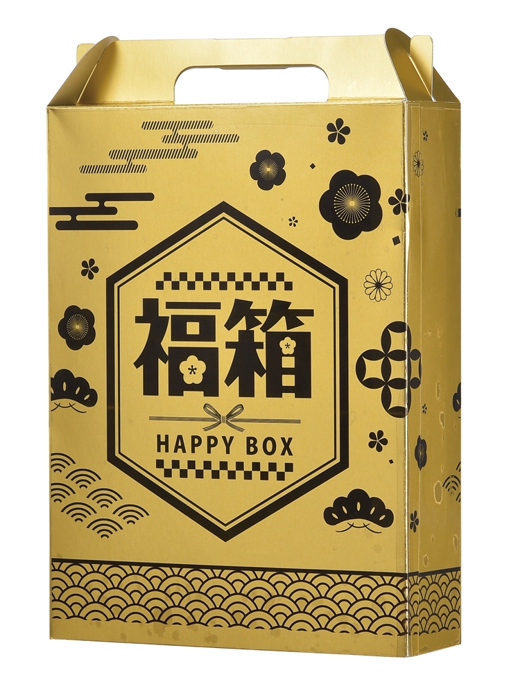 陳列時に映える金色の箱に入った日用品福箱!品のある金色が店頭を華やかに飾ります。