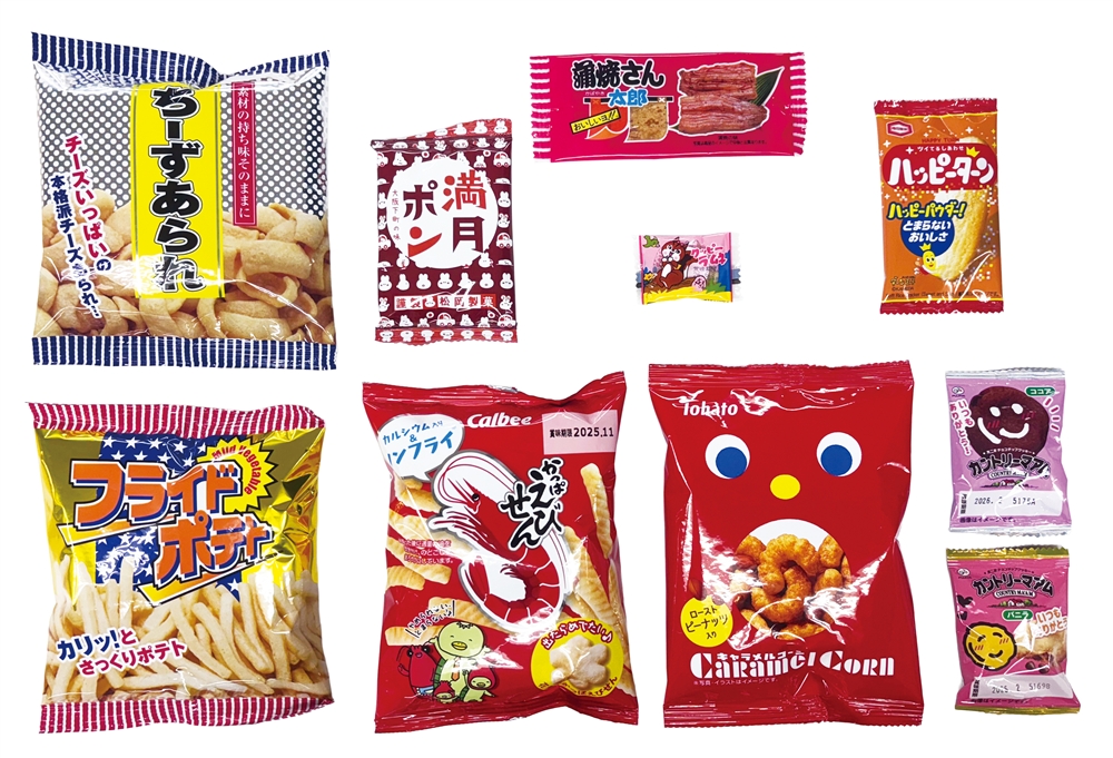 備考 | <セット内容> 若鳩フライドポテト(10g)×1 東ハトキャラメルコーン(20g)×1 カルビーかっぱえびせん(26g)×1 不二家カントリーマアム(ココア)×1 不二家カントリーマアム(バニラ)×1 松岡満月ポン小判×1 アジカルハッピーターン×1 カクダイ粒クッピー×1 若鳩ちーずあられ(10g)×1 やおきん蒲焼さん太郎×1 |