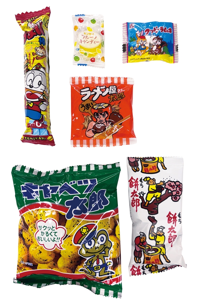 備考 | <セット内容> うまい棒×1 キャベツ太郎×1 餅太郎×1 クッピーラムネ×1 ラーメン屋さん太郎×1 フルーツキャンディ×1 |