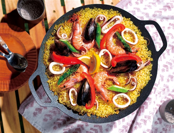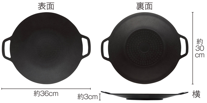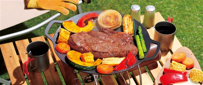 炒める、煮る、揚げるなどさまざまな調理方法に対応します。表面にふっ素樹脂加工が施されており、油を使わずに調理しても焦げ付きにくいのが特長です。厚さわずか3cmとスリムな設計なので、アウトドアでの使用時にも持ち運びがラクラク。お買い上げ特典や、抽選会イベントの特賞などに最適なアイテムです。IHヒーターでも使用可能で、直火調理にも対応します。