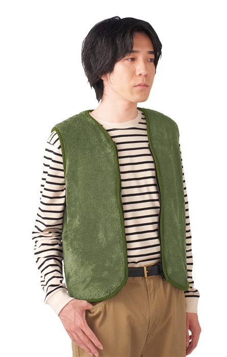 【旧来ご提供単価469円】 ルームウェアやワンマイルウェアにぴったり。ふんわりリッチな手ざわりのボアベストです。
