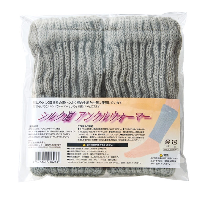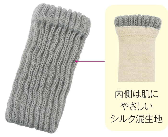 吸湿性の高いシルク混と暖かいアクリル生地を採用した、肌に優しいアンクルウォーマーです。