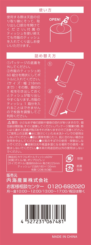フタを開けてティッシュを取り出す仕組みで、詰め替え可能で繰り返し使えます。7cmのスペースに設置でき、使い勝手が良く、名入れも可能で、企業やお店のイメージ向上や売り上げ向上に貢献します。