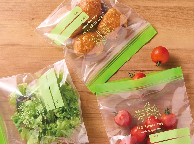 製造時にサトウキビ由来の原料を加えた、環境を想ってつくった保存バッグです。