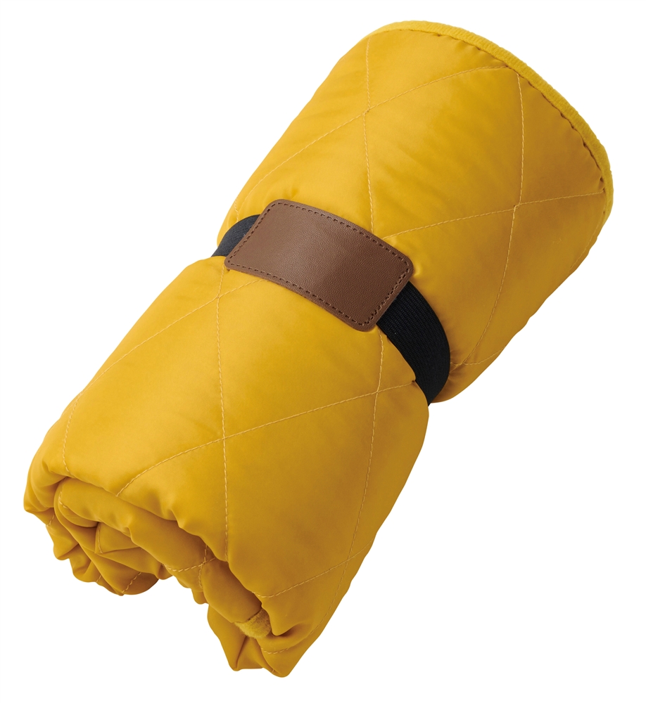 くるっとまとめておけるゴムバンドには名入れができるスペースがあります。大人でもゆったり使える大判サイズです。室内でも屋外でもなじむマスタード調のイエローとカーキ調のグリーンの2色アソート。