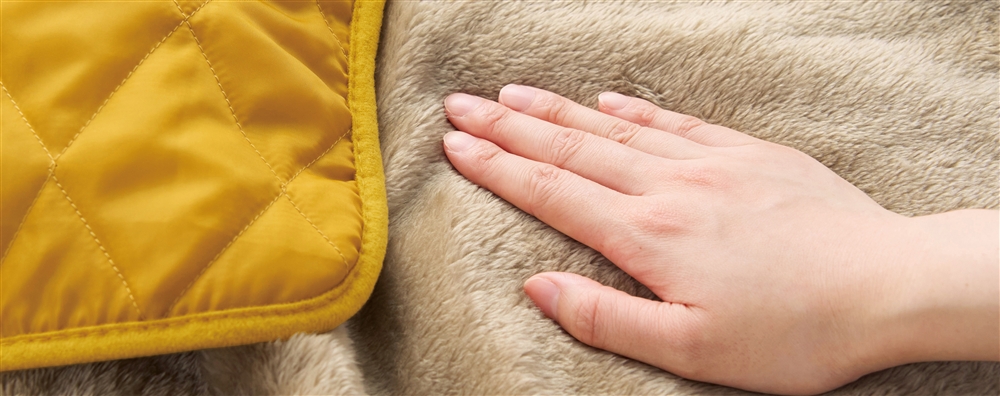 一味変わったブランケットをお探しなら!風を通しにくいキルティング×ふかふかボアの張り合わせ。