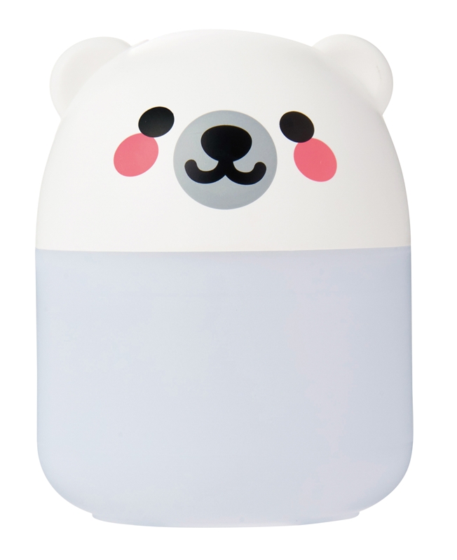 使用中はタンク部分の色がゆっくり変わるグラデーション点灯仕様。キュートな見た目や名入れがきちんと見えるクリアケース入り。デスクやベッドサイド、子ども部屋の乾燥・ウィルス対策に。