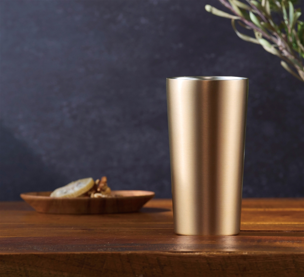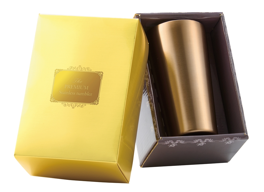 ゴールドパッケージの中には品のよいゴールドのタンブラーが。ドリンクの飲み頃の温度をキープします。