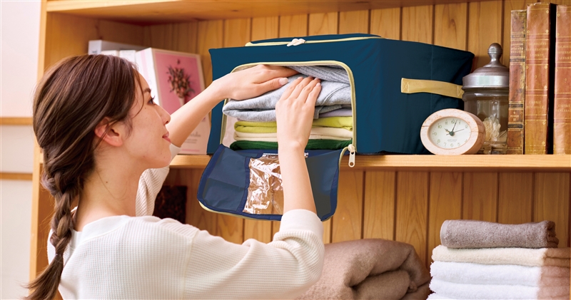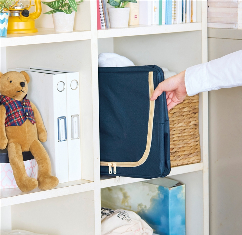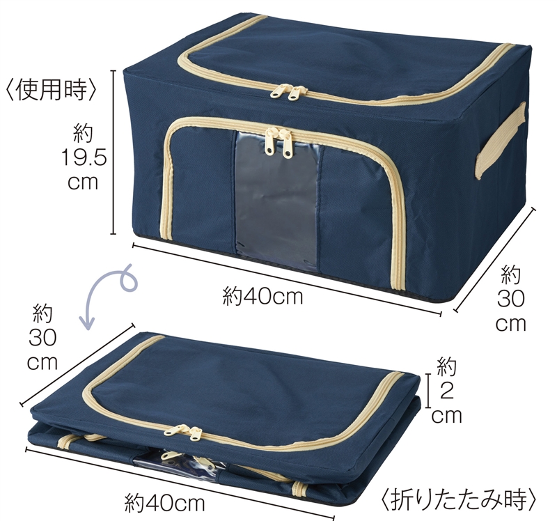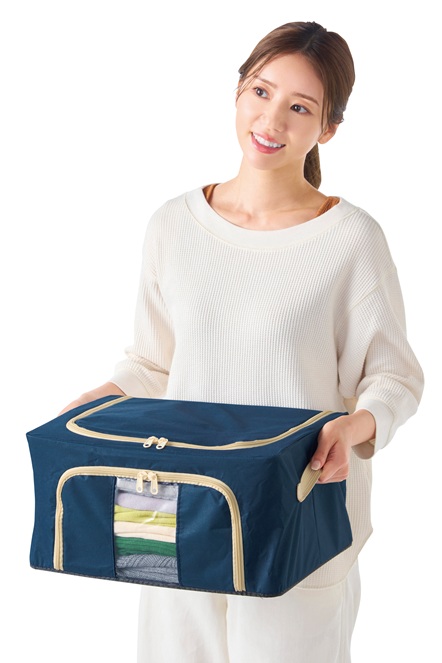 天面と側面の2か所ファスナーで、置き場所を選ばず出し入れしやすい収納ボックス。透明窓付きで中身が一目で分かり「何が入ってたっけ?」を防ぎます。両サイドに持ち手も付いて、持ち運びもカンタン!使わない時は折りたたみ可能で省スペース保管も◎