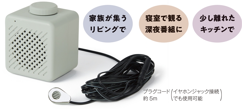 テレビから離れていても音を手元で聞ける有線スピーカーです。付属の約5mケーブルでつなぐだけで、音量を上げずに聞き取りやすさが向上します。操作も簡単でシニア世代にも安心のアイテムです。操作もシンプルで、シニア世代にもやさしい設計です。