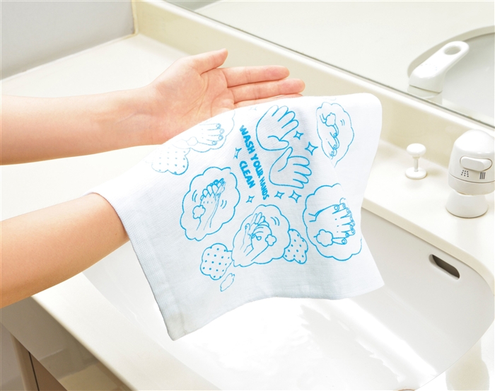 【旧来ご提供単価160円】 手洗い方法をイラストで楽しく図解♪子どもたちに持たせるならこんなタオル