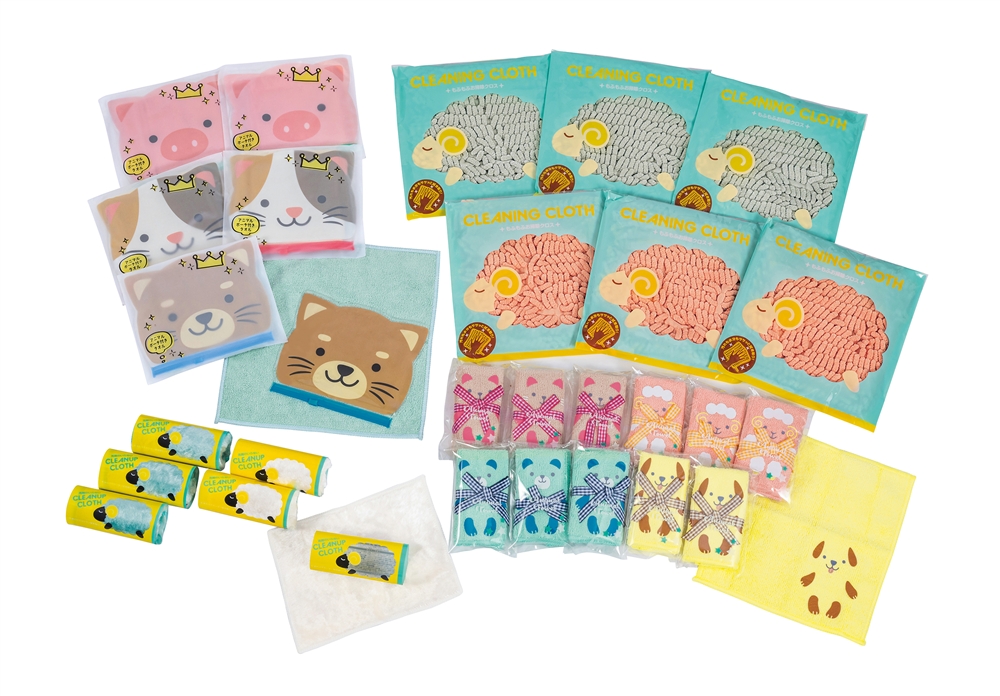 思わず笑顔になる可愛さ!お掃除やお出かけで活躍するアニマル雑貨を集めた、キュートな詰合せパック。