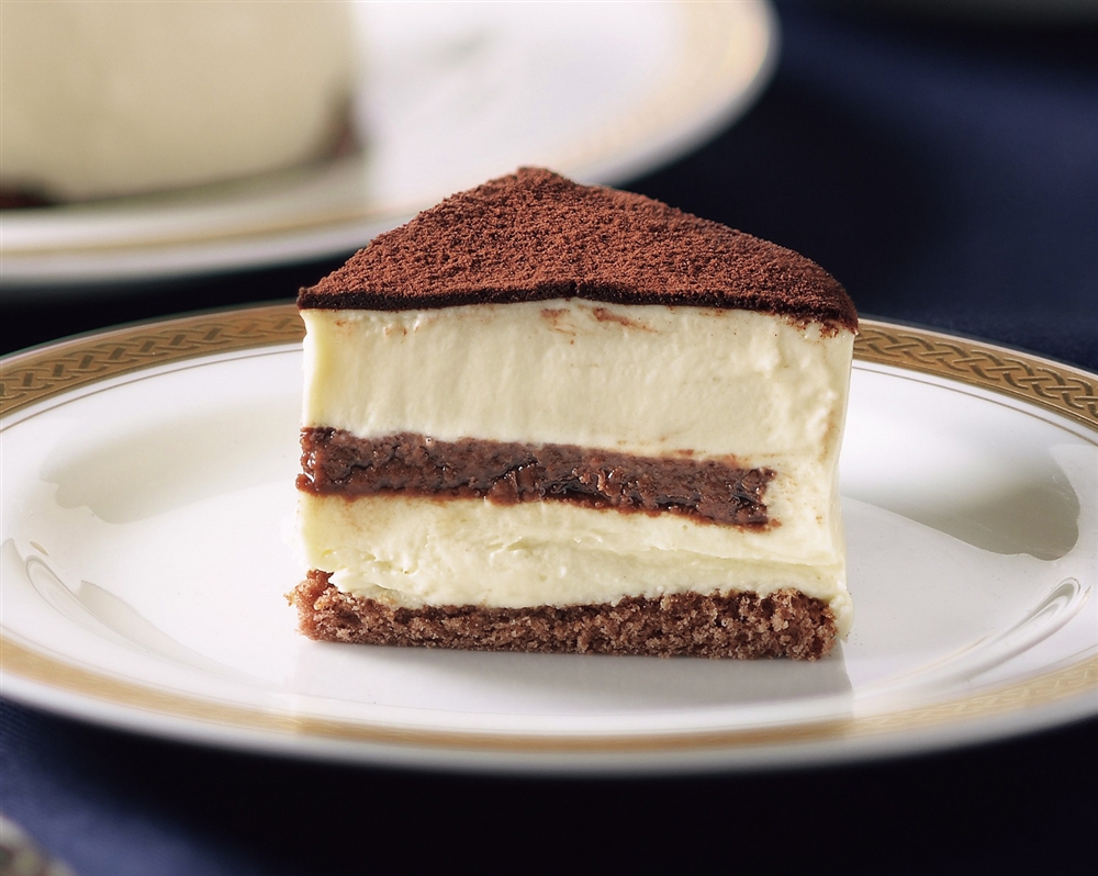 北海道産の牛乳を使用した、マスカルポーネのふんわりムースに、ベルギー産クーベルチュール配合のチョコスフレをサンドした濃厚ティラミス。