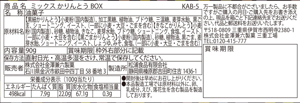 | 備考 | <セット内容> ミックス和風かりんとう(黒細・きなこ・黒ごま) 90g |