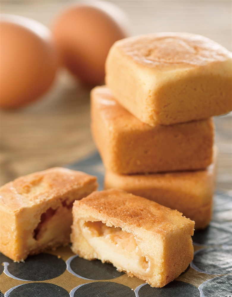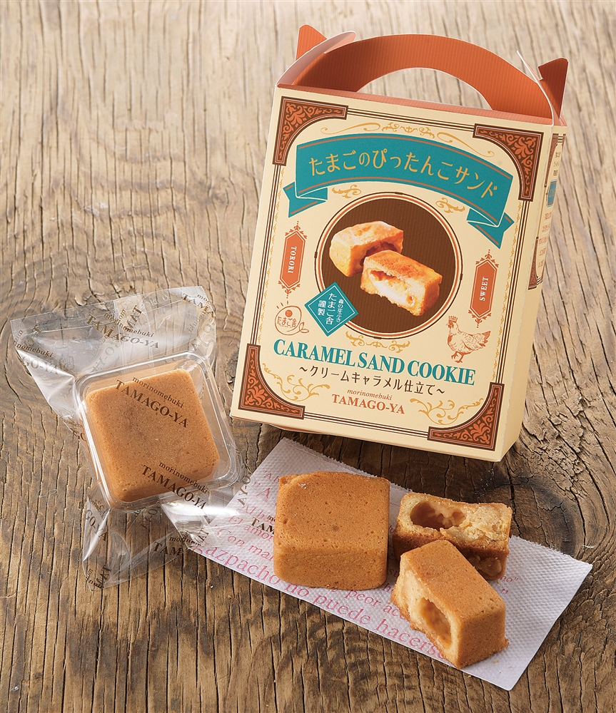 こだわりたまごで作ったクッキー生地の中にはバランスを考え抜いたクリームキャラメルが入っています。たまごが香る両面鉄板焼き製法でおいしさの食感を追求しました。