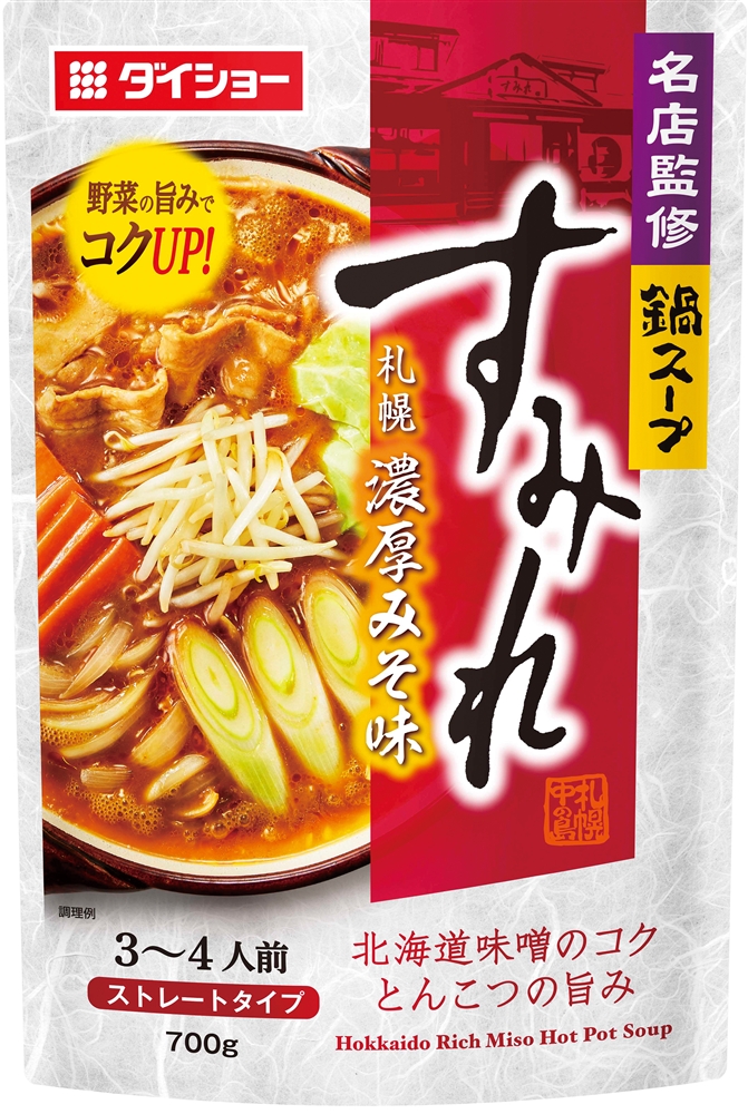 ラーメンの名店「札幌 すみれ」監修のもと、北海道味噌のコク深いスープに、とんこつ・にんにくの旨みを加え、名店の味を鍋スープで再現しました。時代とともに味を追求し進化を続ける「札幌 すみれ」の味噌ラーメンは、濃厚でコクと香りのあるスープと札幌特有の中太ちぢれ麺が特徴です。