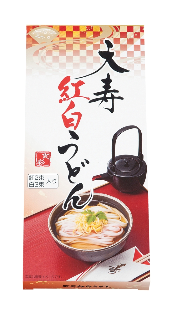 日本人になじみ深いうどんをめでたい紅白のセットに誂えました。