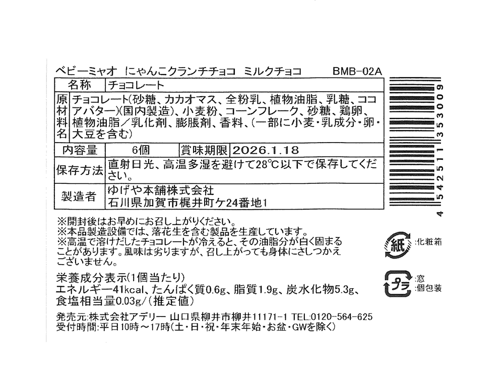 | 備考 | <セット内容> ミルククランチチョコ6個 |