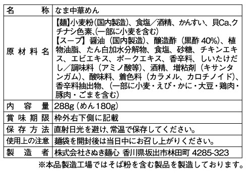 | 備考 | <セット内容> 麺90g×2 酸辣湯スープ54g×2 |