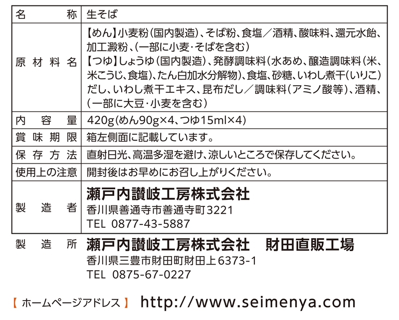 | 備考 | <セット内容> めん90g×4 つゆ15ml×4 |