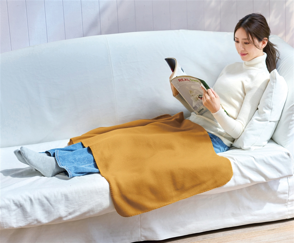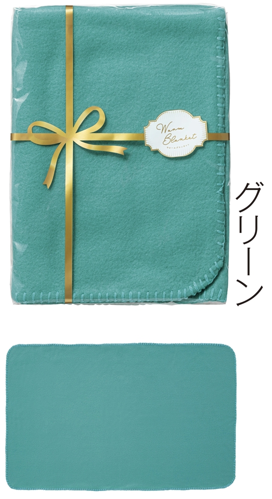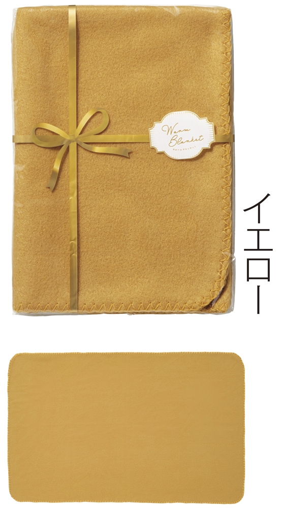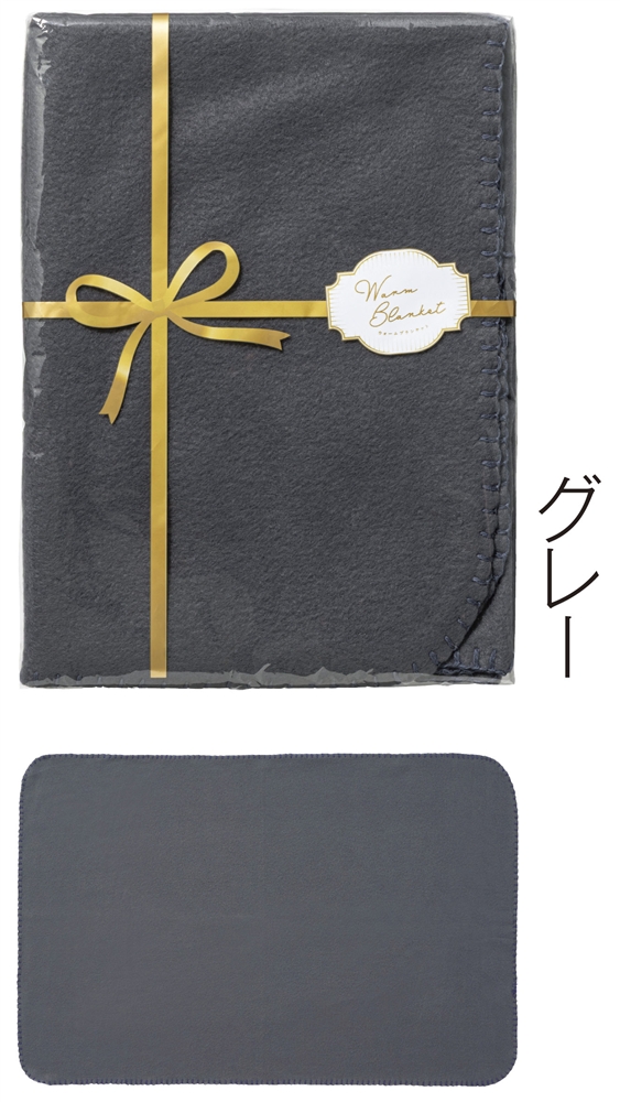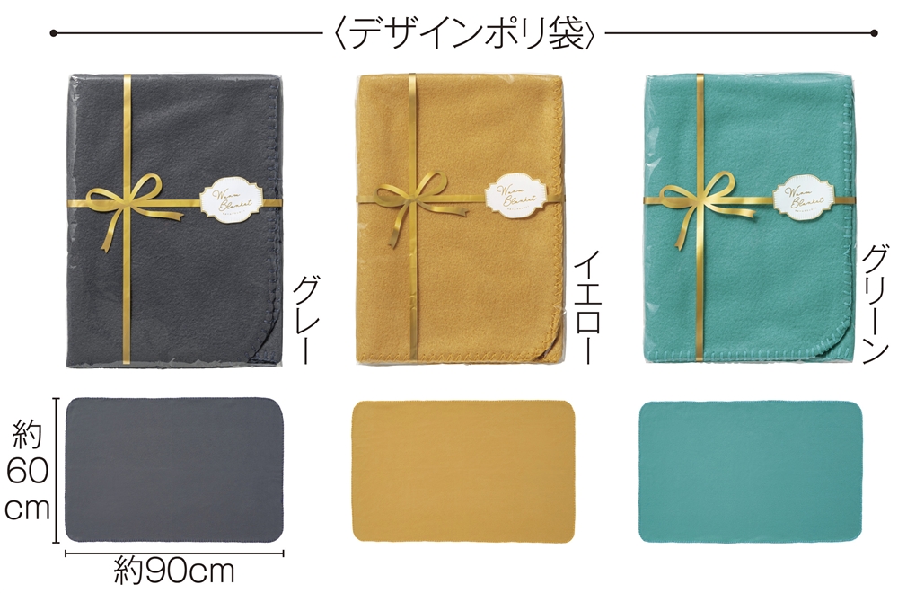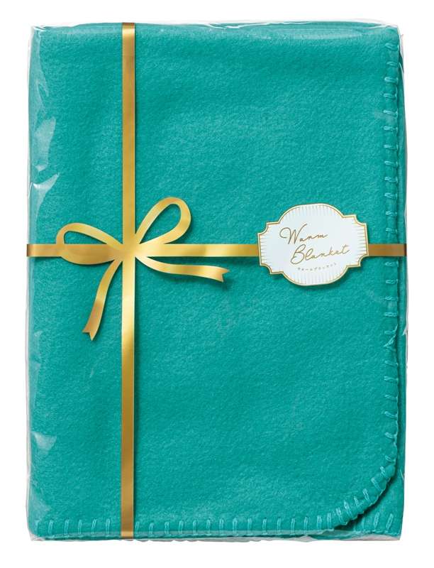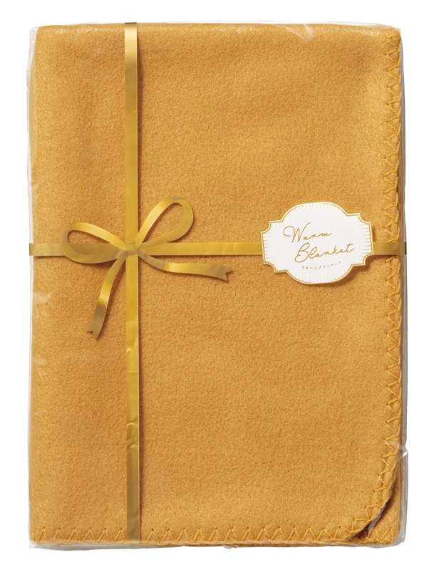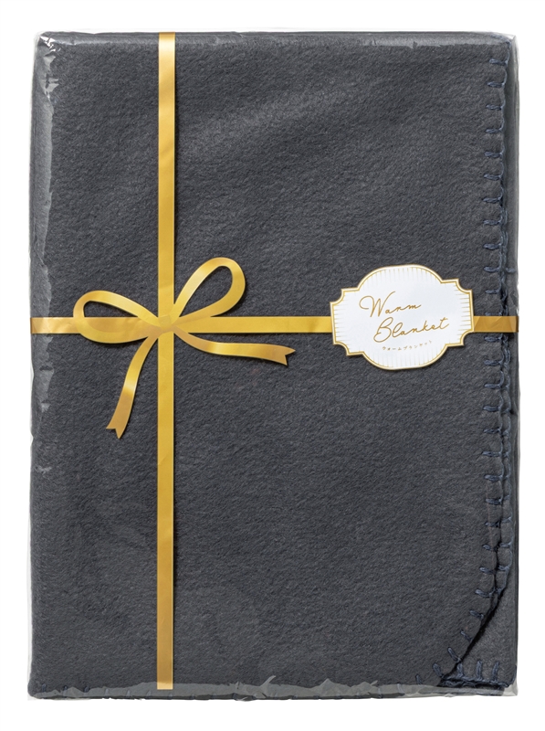 ゴールドのリボンでラッピングしたかのようなパッケージがポイント。使いやすいフリースブランケットです。