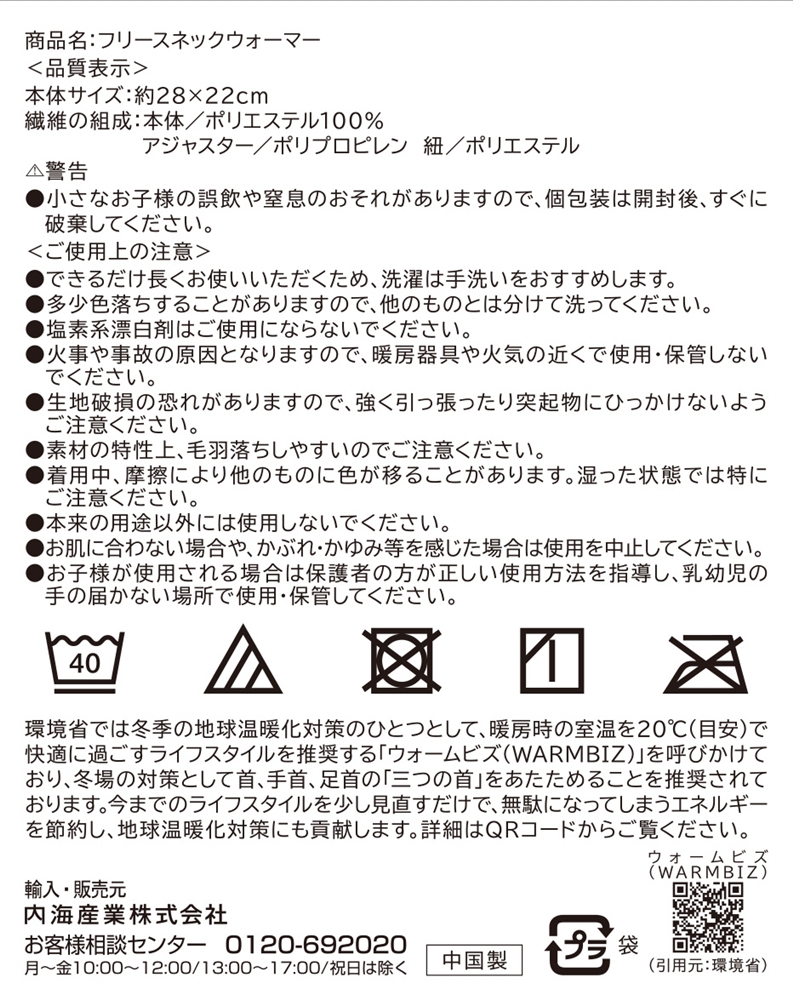 通勤、お散歩、アウトドアなど毎日使えるシンプルなフリースネックウォーマー。
