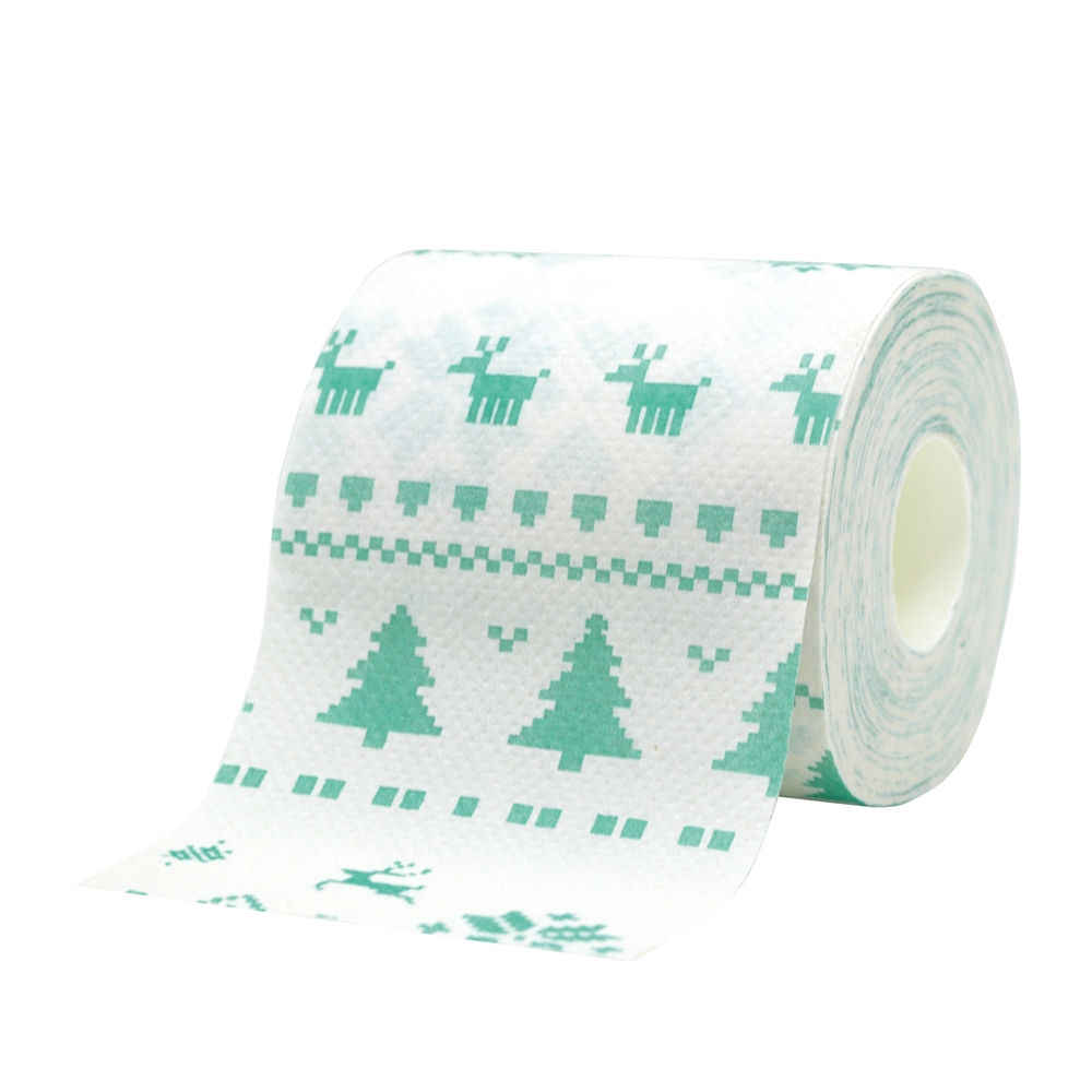 くるみわり人形とサンタクロースデザインのトイレットペーパー。 白地にノルディック柄のプリント入り。
