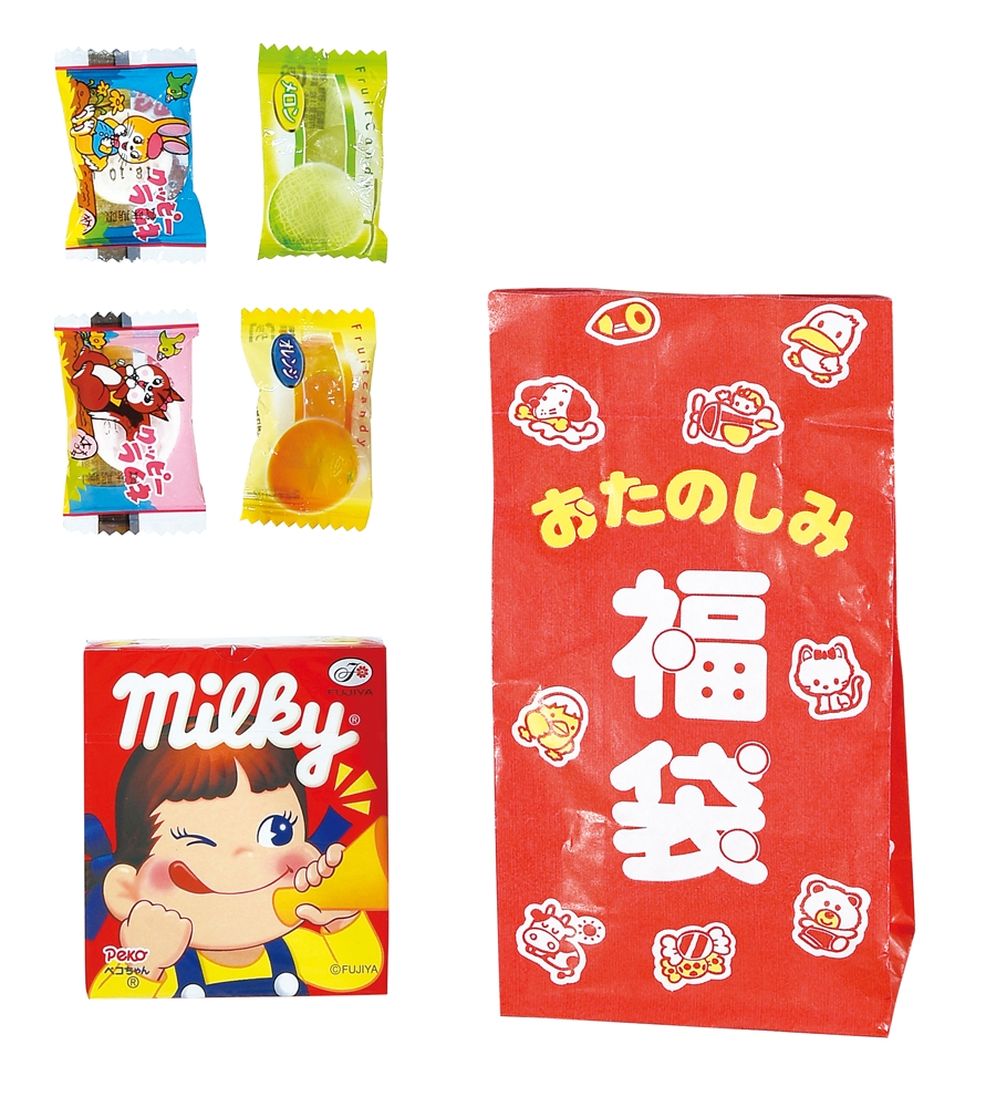 備考 | <キット内容> 【大吉】福袋BIGサイズ・・・1本 【中吉】福袋ミニサイズ・・・2本 【小吉】福袋プチサイズ・・・4本 【吉】お年賀お菓子セット・・・23本 <付属品> 抽選くじ×30、抽選箱×1、くじ明細書×1、告知用A3ポスター×1 ※賞品の内容・仕様は画像と異なる場合があります。あらかじめご了承ください。 |