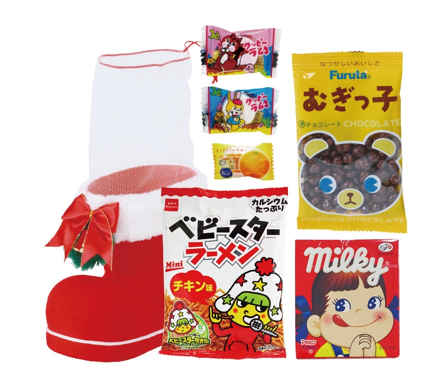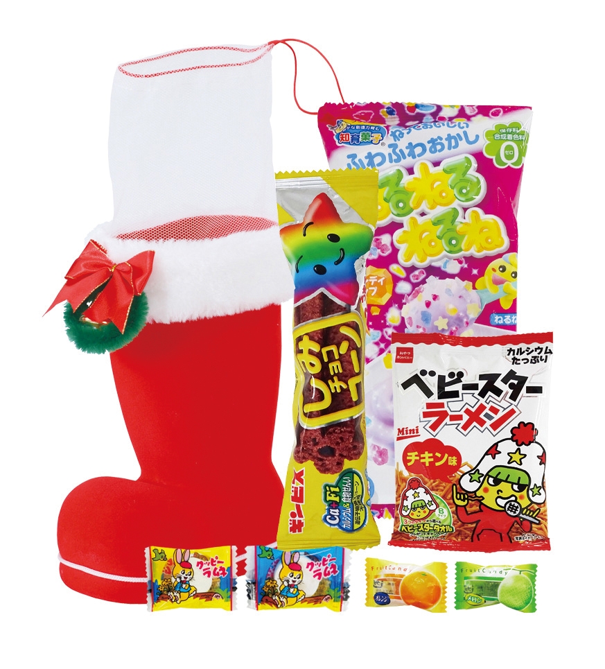 備考 | <キット内容> 【A賞】サンタブーツBIGサイズ(お菓子7個入)・・・1本 【B賞】サンタブーツLサイズ(お菓子6個入)・・・2本 【C賞】サンタブーツSサイズ(お菓子5個入)・・・3本 【D賞】サンタブーツミニサイズ(お菓子5個入)・・・4本 【E賞】サンタチョコセット・・・40本 <付属品> 抽選用くじ×50、クリスマス抽選箱×1、くじ明細書×1、告知用A3ポスター×1 ※賞品の内容・仕様は画像と異なる場合があります。あらかじめご了承ください。 |
