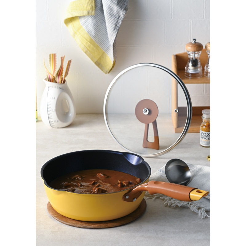 煮るにも焼くにも使いやすい絶妙な深さのフライパン。フライパンでカレーの具を炒めてから煮ることができ、オールインワンで調理がスムーズに行えます。ガラス蓋は立てて置けるので置き場に困りません。カレー3点とスパイス香るライスメニュー&併せて楽しめる副菜を載せたオリジナルレシピ付。