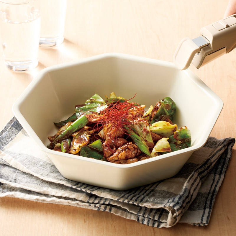 調理してそのまま卓上に出しても卓上が華やぐお皿のようなフライパン。セラミックコーティングで陶器のようなつややかさとこびりつきにくくお手入れのしやすさが特長です。