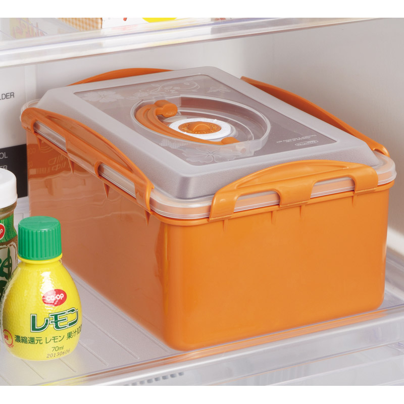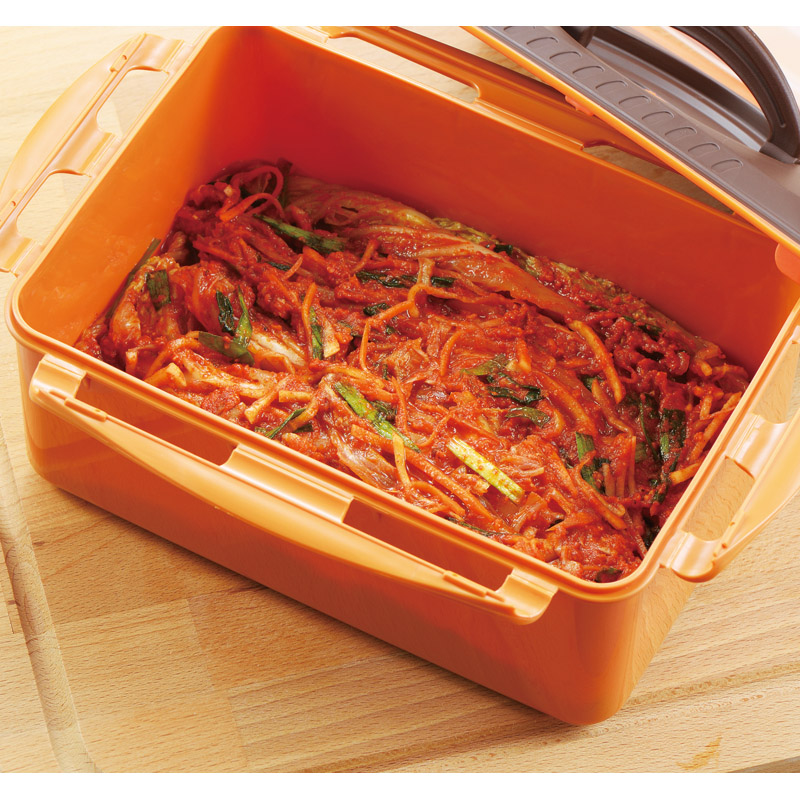 パッキンと4点ロックでぬか漬けのにおいをガード。内ぶたの周囲のパッキンが容器にピッタリとフィットし、漬物の臭いが冷蔵庫内で充満したり、汁が漏れたりすることがありません。冷蔵庫に収納しやすい角型でキュウリが丸ごと一本入ります。