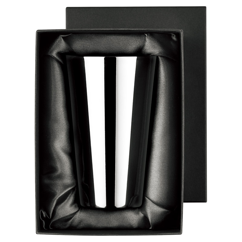 18-8ステンレスを酸化被膜により黒く染めた後、職人が一つ一つ丁寧に磨き込むことで、黒い輝きを放ちます。2重構造で、温かさ・冷たさが長持ちします。