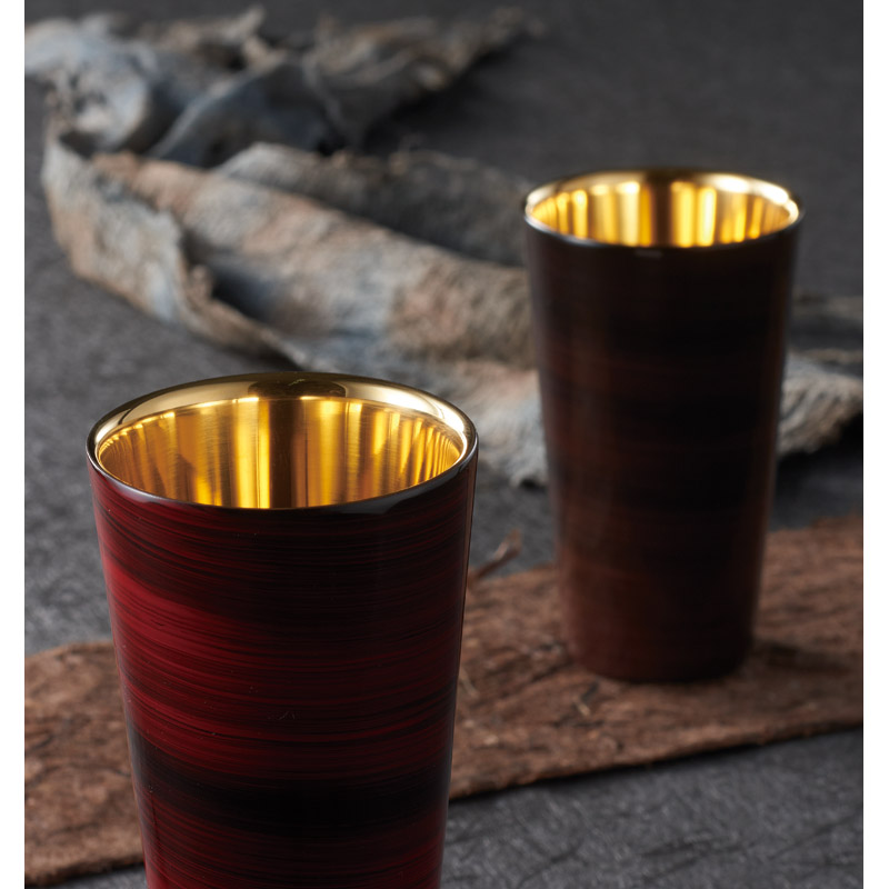 燕市で磨き抜かれたタンブラーに伝統工芸山中塗を施した2大産地による逸品。漆は同じ柄は一つとなく時間が経つにつれてその色が落ち着きを醸すように経年進化していくので自分だけのタンブラーをお楽しみ頂けます。