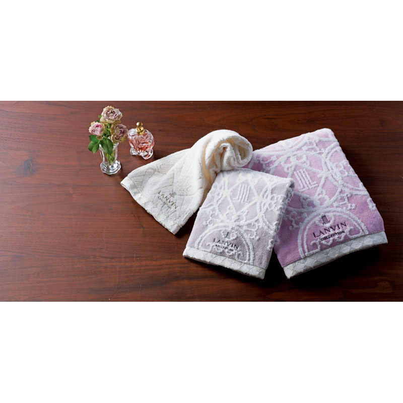 フレンチクラシック&エレガンスを表現するランバンコレクション。無撚糸パイルとシャーリングをミックスした特殊な手法により凹凸感のあるタオルに仕上げました。ラグジュアリーなJLオーナメントデザインが魅力的なタオルギフトです。