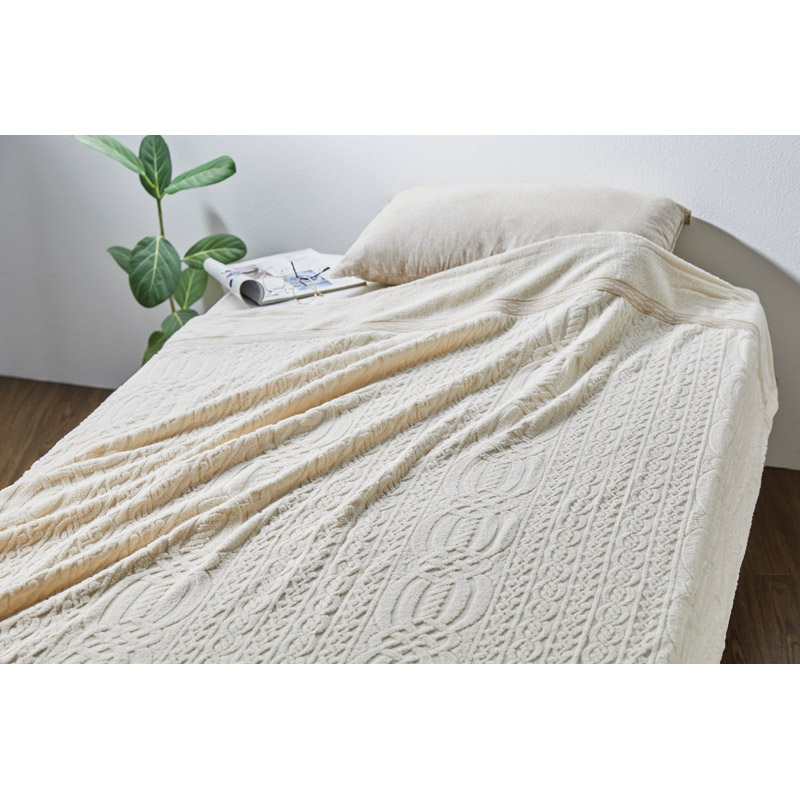 環境にも肌にもやさしいエコ素材を使用した、今治のジャカードタオルケット。ふんわり軽やかな肌ざわりで、心地よい眠りをお届けします。
