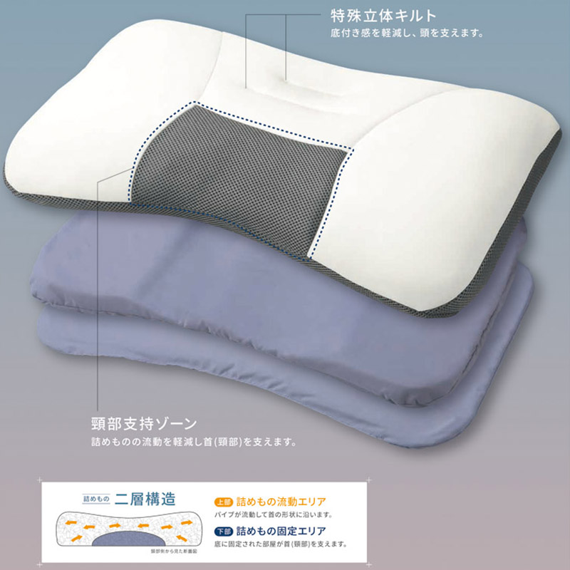 整形外科医推奨の自分好みに高さ調整ができるnishikawaおすすめのまくらシリーズです。立体形状・立体キルトで首(頸部)・頭を支えるまくら。頸部二層立体キルト構造で仰向き時の中材の流動を軽減し、首(頸部)を支えます。高さ調節シートに加え、4か所から中材を出し入れできるので、お好みの高さでお休みいただけます。