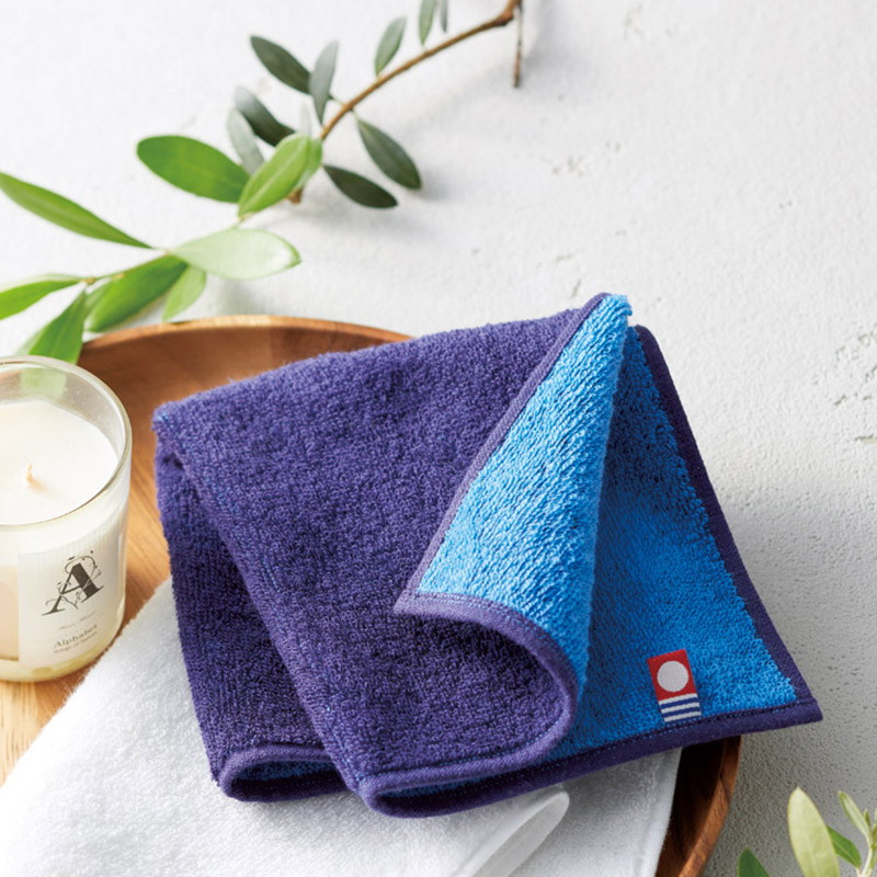 ログインブルーとネイビーの綺麗なリバーシブルと白の組み合わせ。