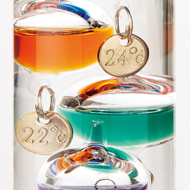 お部屋の温度をおしゃれに表現します。気温によって上下するガラスの球体が気温を示します。オブジェとしてではなく、機能性も備えたユニークなインテリア。カラフルで爽やかなアイテムです。○測定範囲:18~26℃