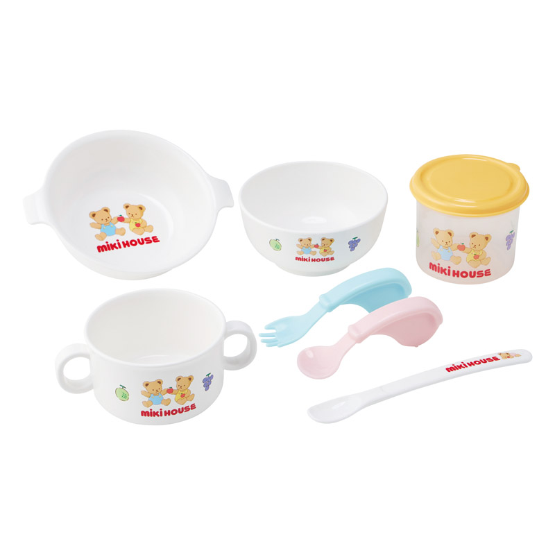 はじめての離乳食に便利なテーブルウェアセット(食器セット)です。出産お祝いやプレゼントにおすすめです。離乳食の初期から自分で食べられるようになるまで長くお使いいただけます。食洗機OK。