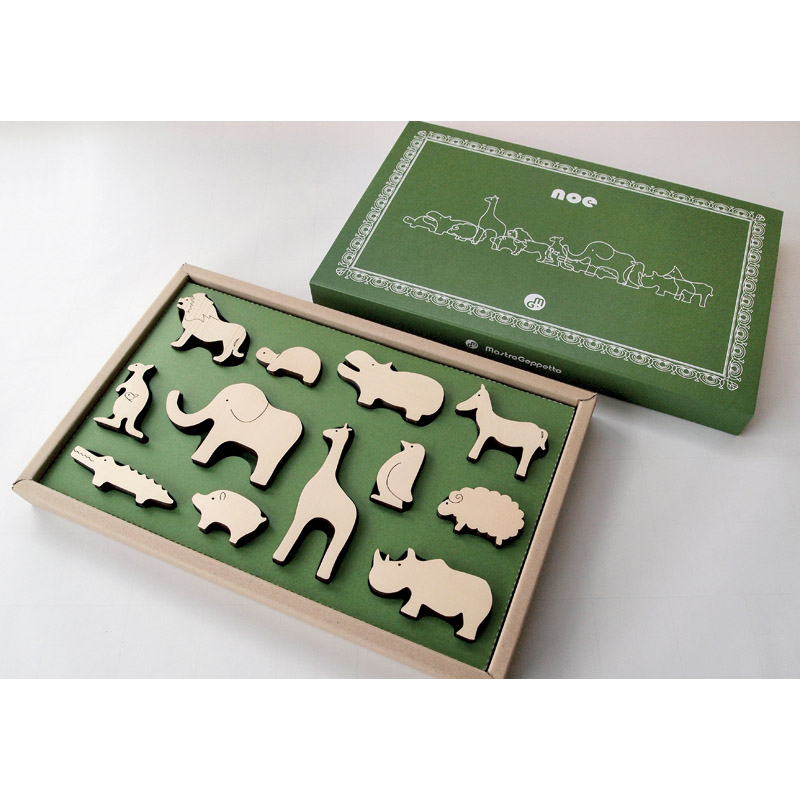 「ノアの方舟」からイメージして生まれた、木の動物セットです。物語を作ってトコトコ歩かせたり、積み木や乗り物おもちゃと組み合わせたり、またインテリアとして長く遊べるおもちゃです。