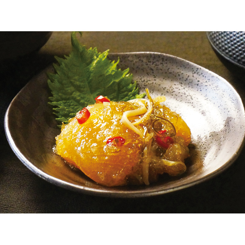 北海道道南地方で古くから伝わる郷土の味松前漬。醤油ベースの調味液に昆布とするめの美味しさが溶け出し、大ぶりの数の子によく絡み合います。おせち料理、お酒の肴に、ご飯のお供としておすすめです。