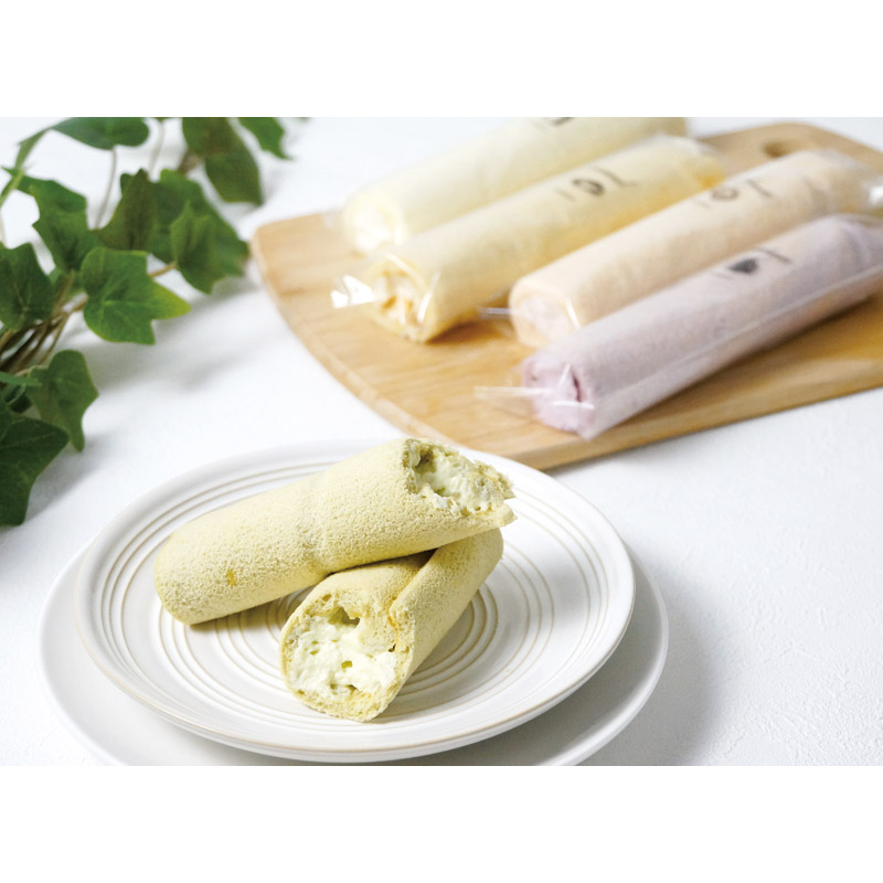 ミルク風味をしっかりと感じる5種類のクリームをふわふわ食感のスポンジで巻き上げ、スティック状のロールケーキに仕上げました。ワンハンドで食べられるので、ティータイムはもちろん差し入れや外出先でのひとときにおすすめです。