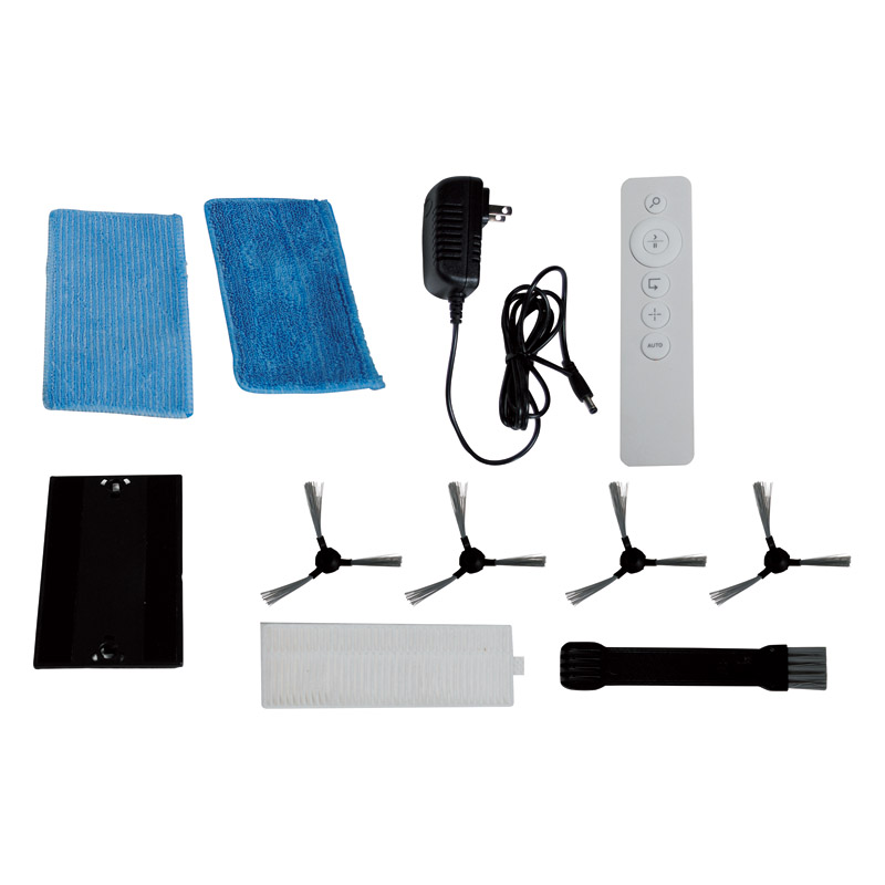 ボタン1つの簡単操作&シンプルデザイン。小型設計(高さ7.6㎝)なのでソファーの下、ベッドの下のお掃除もOK。段差検知センサー付き。サイドブラシは水洗いOK。専用フロアーモップ付きで細かいホコリを除去しフローリングの拭き掃除も可能。ダストケースは簡単に取り外せ、水洗いが出来て清潔。離れた場所からも操作しやすいリモコン付き。