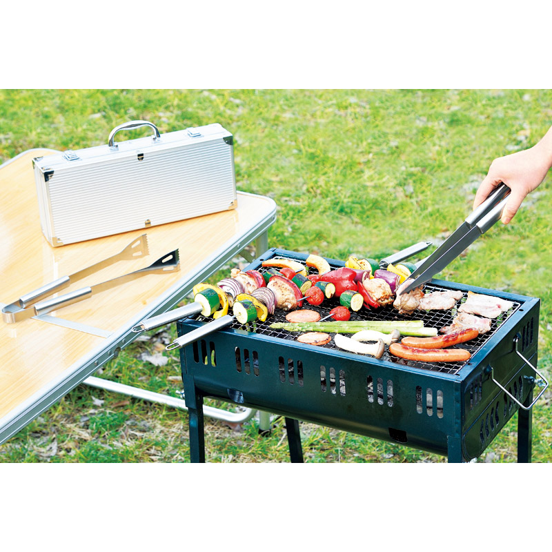 アルミケース入りバーベキューセット。BBQのツールが揃って、すぐに準備万端!ステンレス製でサビに強く衛生的です。